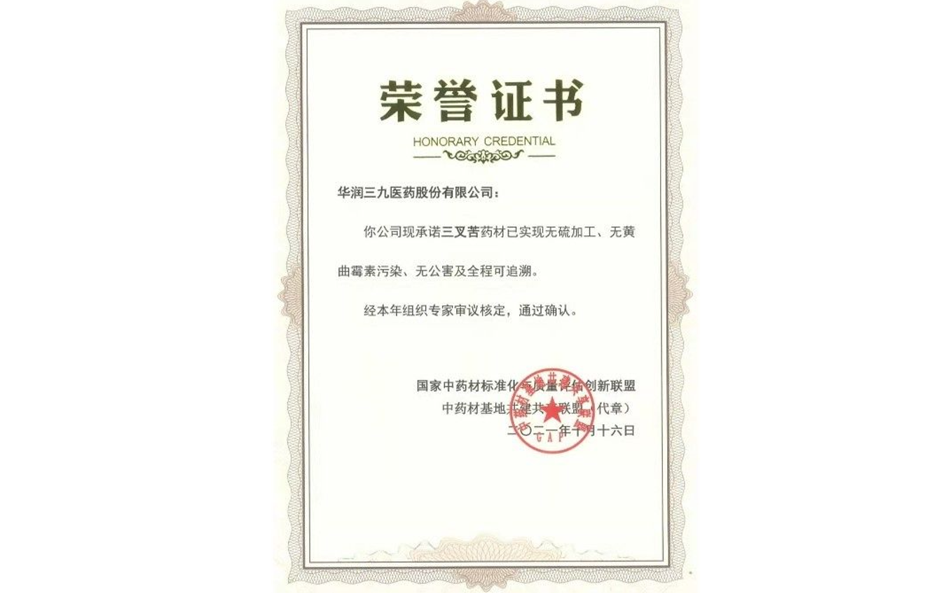 10月16日,在南宁召开的第九届中药材基地共建共享同盟交流大会上,人生就是博申报的“三叉苦”药材获评“三无一全”优质药材,并颁授品牌品种证书。“三无一全”证书由国家中药材标准化与质量评估立异同盟揭晓,要求在中药材生产历程中实现无硫加工、无黄曲霉素污染、无公害及全程可追溯。
