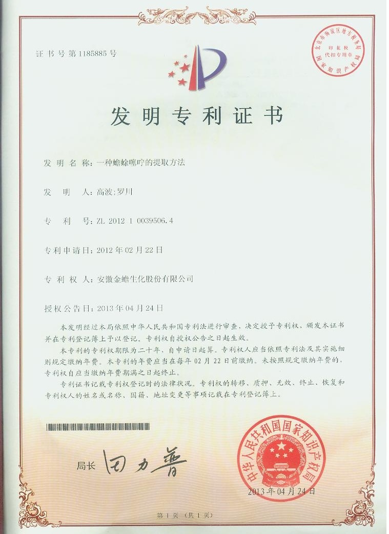 °²»Õ»ªÈó½ðó¸Ò©Òµ¹É·ÝÓÐÏÞ¹«Ë¾ÉêÇëµÄ¡°Ò»ÖÖó¸òÜàçß̵ÄÌáȡҪÁ족·¢Ã÷רÀû£¬¿ËÈÕ»ñµÃÁ˹ú¼Ò֪ʶ²úȨ¾ÖµÄרÀûÖ¤Ê飬רÀûºÅ£ºZL201210039506.4¡£´ËÏîרÀûÊÇ»ªÈó½ðó¸ÔÚ²úÆ·Éî¶ÈÑз¢ºÍ֪ʶ²úȨ±£»¤·½ÃæÈ¡µÃµÄÓÖÒ»ÏîÖØ´óЧ¹û¡£