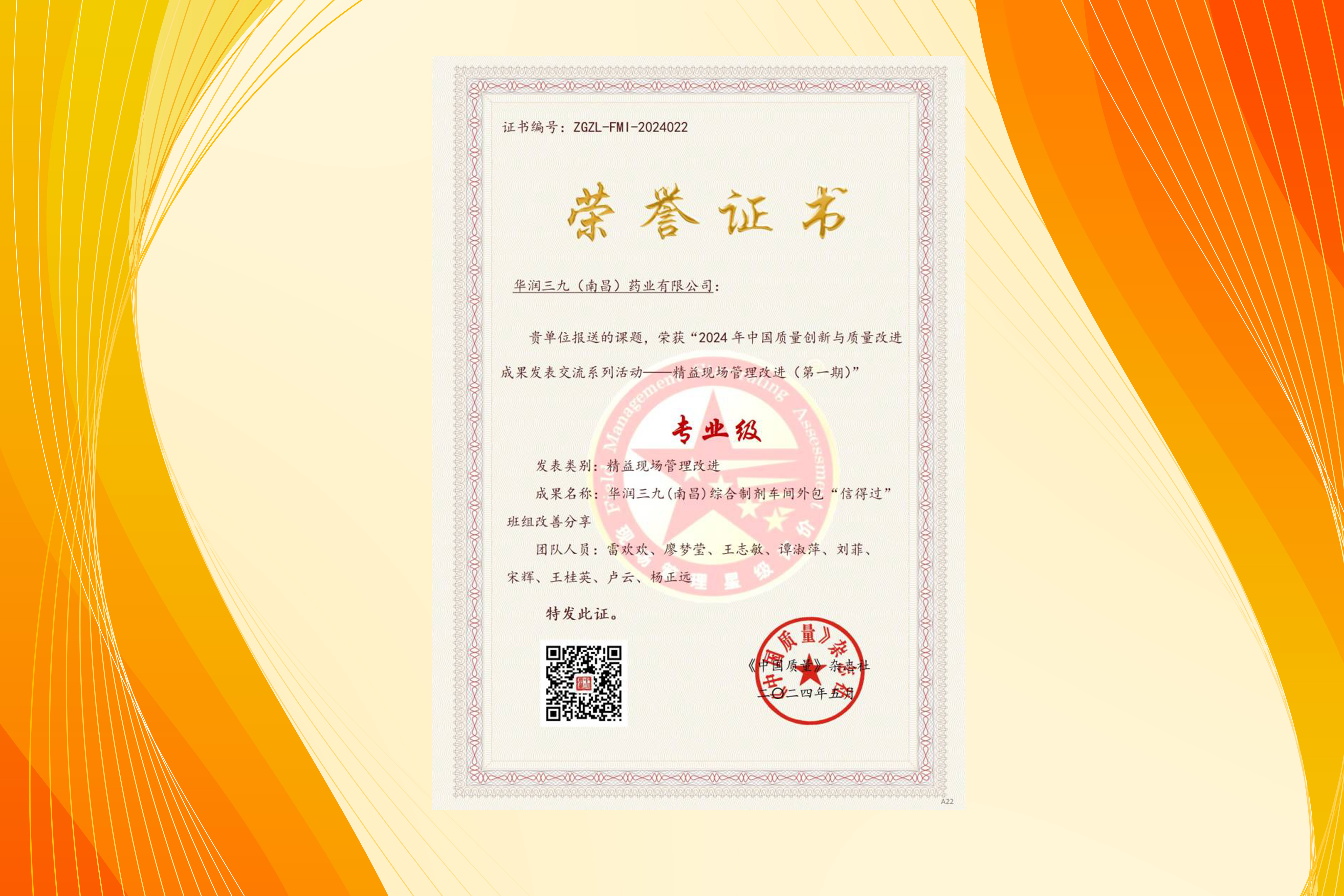 人生就是博(南昌)综合制剂车间外包“信得过”班组荣获中国质量协会“专业级”声誉